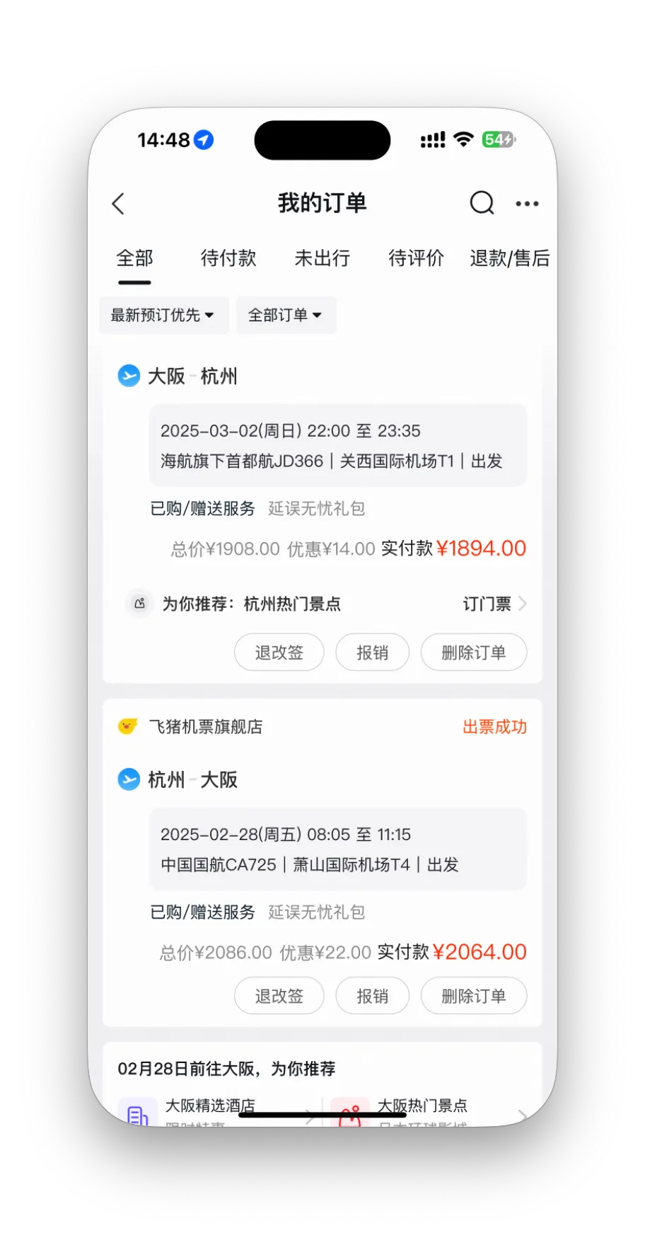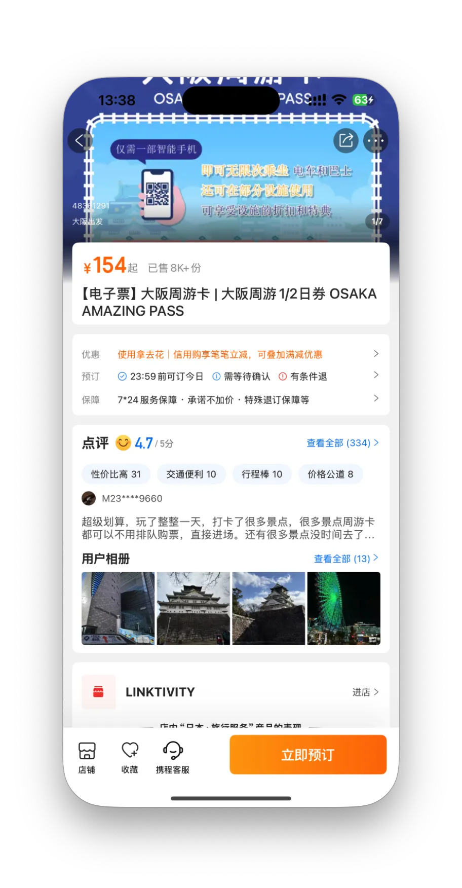 携程可以购买大阪周游券: