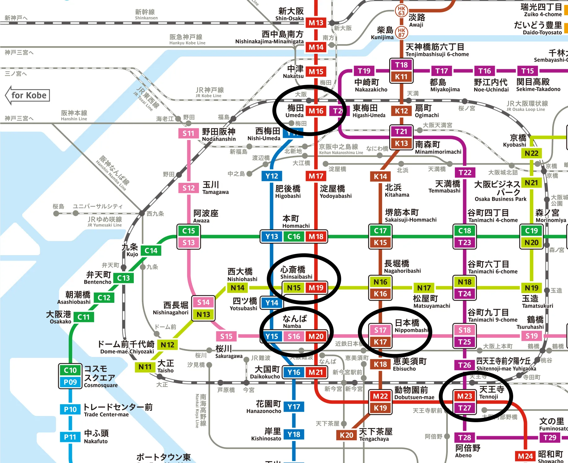 御堂筋线梅田-> 心斋桥 10min