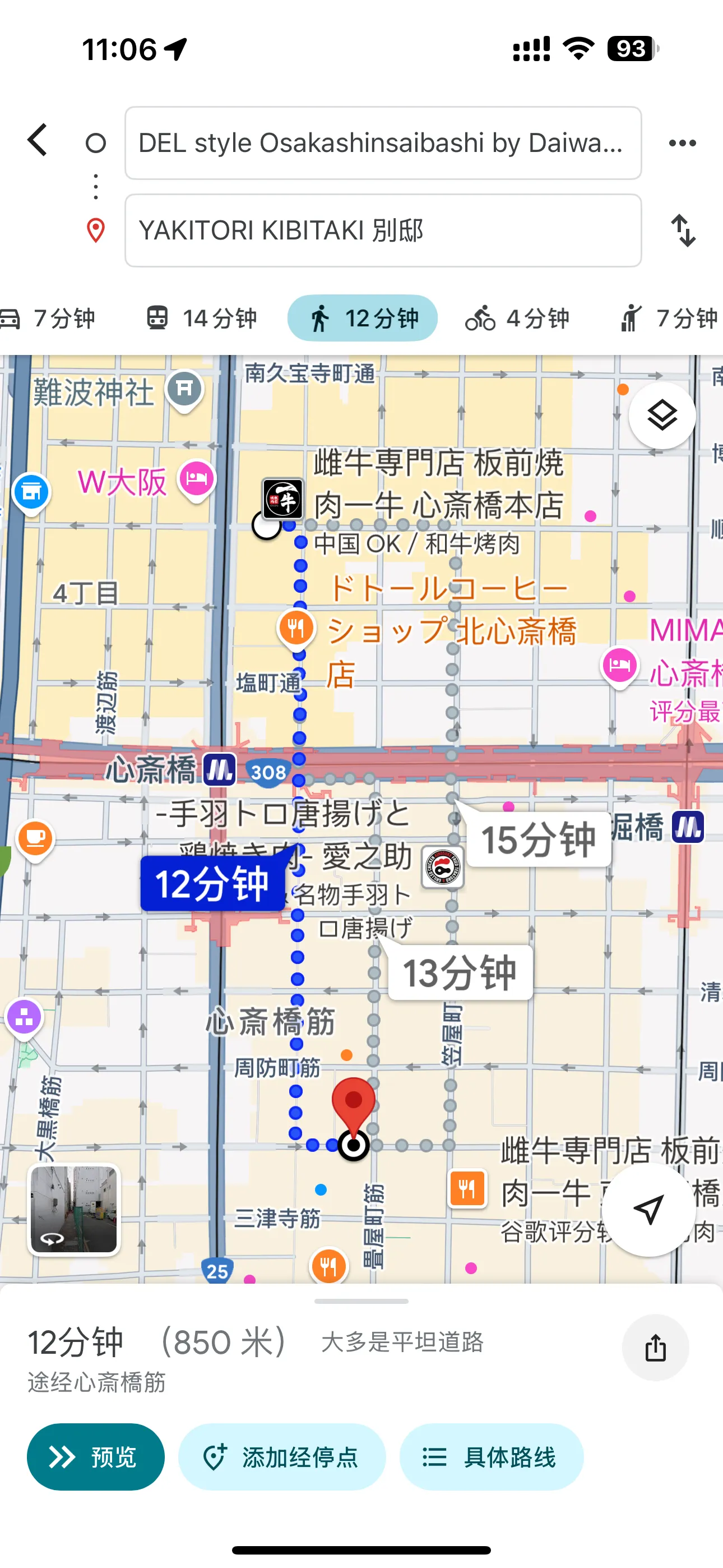 大阪站 -> 心斋桥