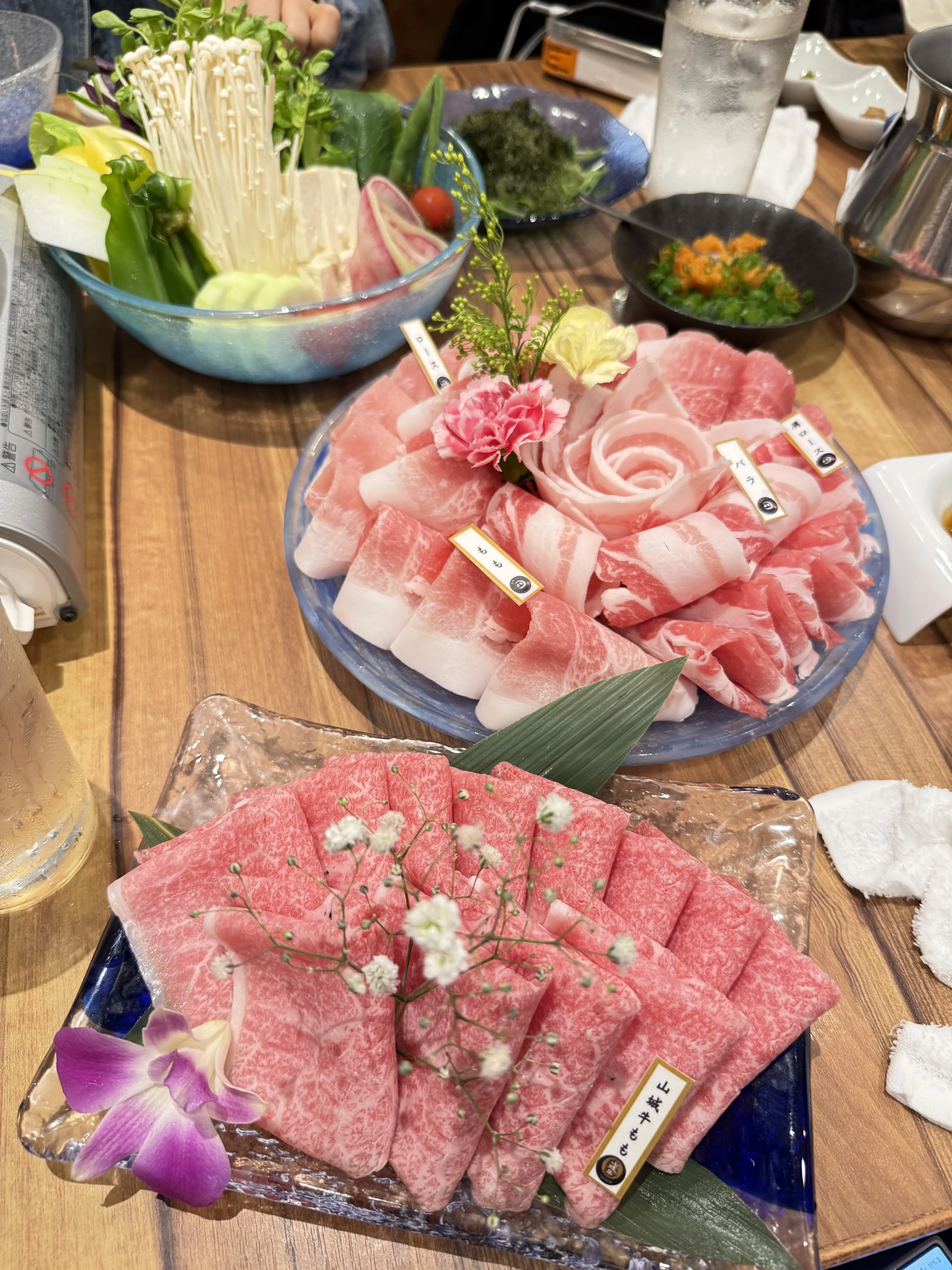 晚饭找牛吃,主要是没有预约到琉球的牛。最后我们吃了山城牛的涮锅,也蛮好吃的,人均300左右。