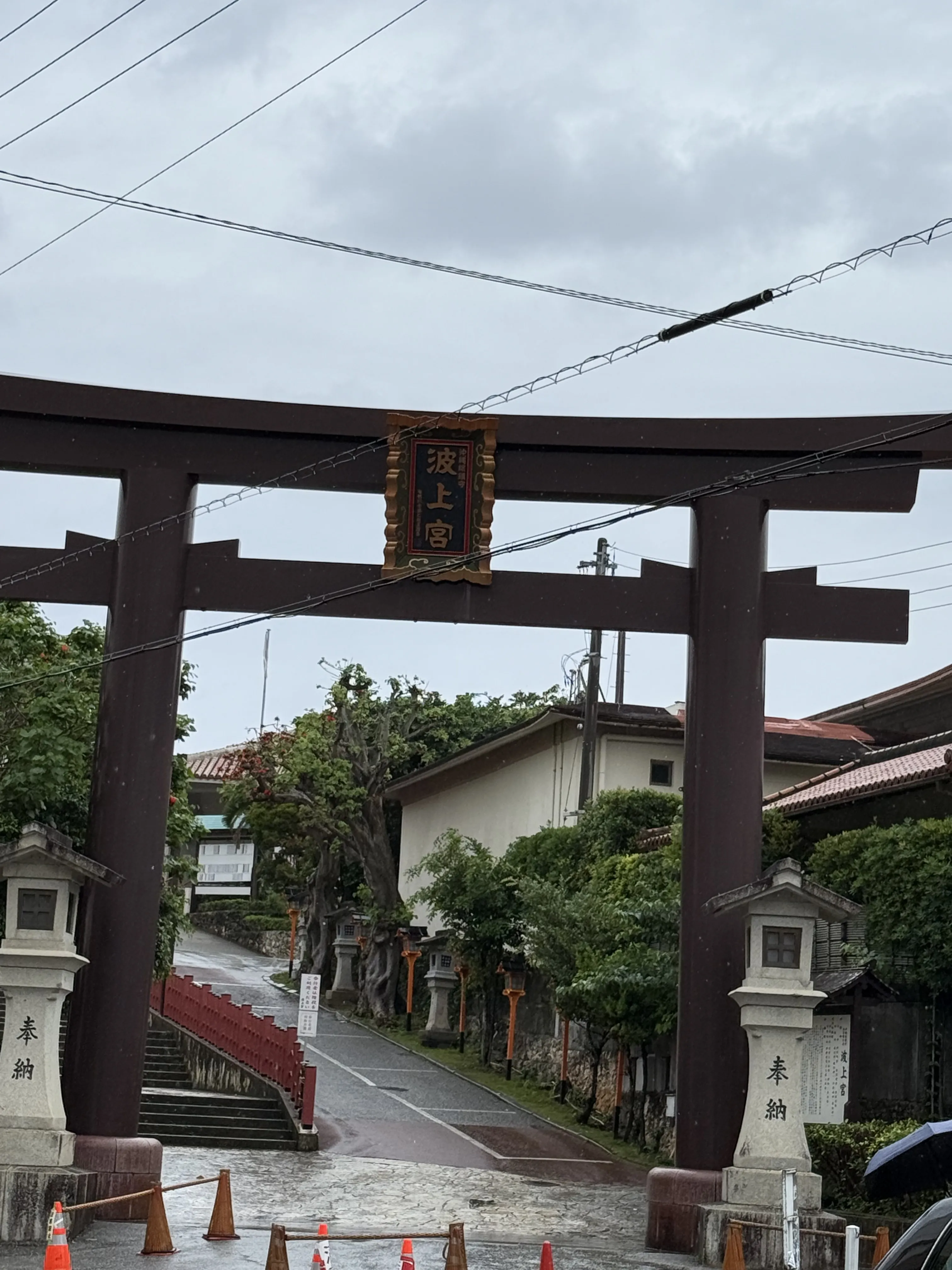 之后去后面的大桥上看波上宫,步行不算远,但是雨越下越大,我们最后在波上宫后面的大桥上风中凌乱。